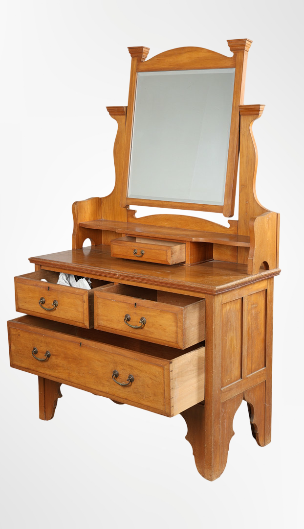 Edwardian Satinwood dressing table with large centre mirror, with two short over a single long drawer, on bracket feet.